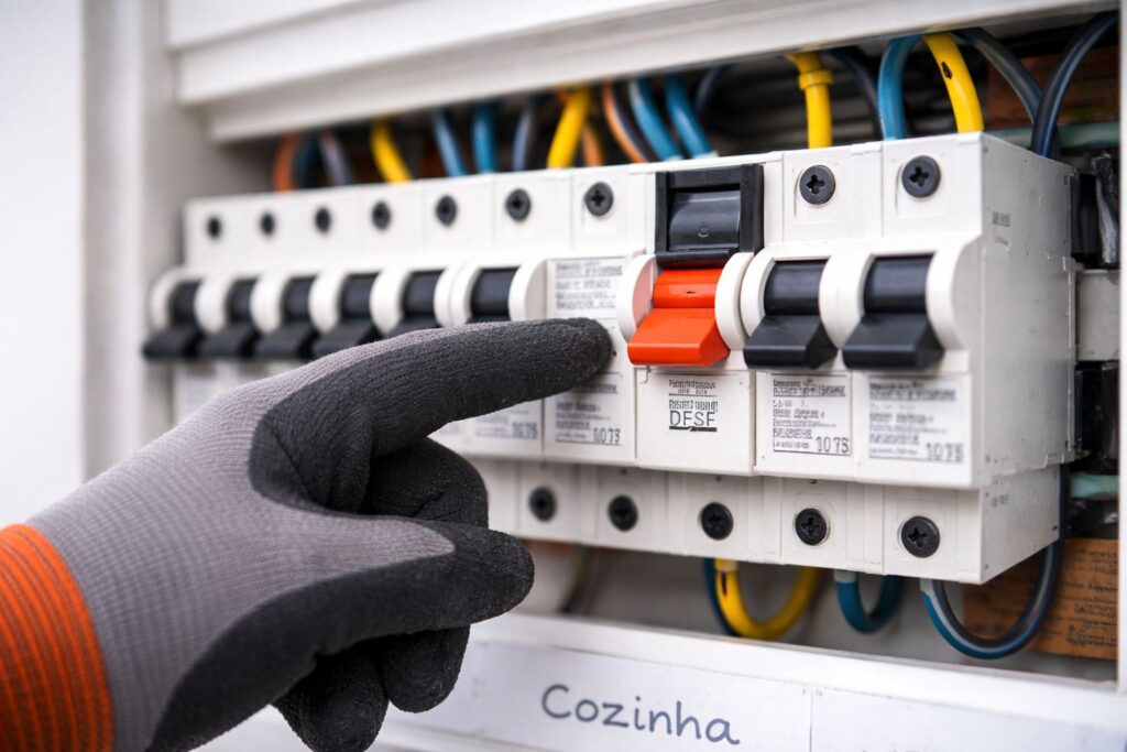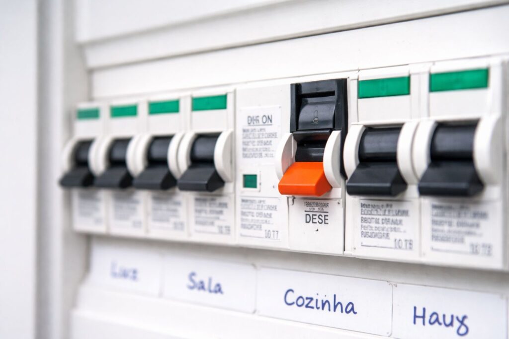 1. Identifique qual disjuntor está desarmando e quais ambientes ou tomadas ele alimenta.
